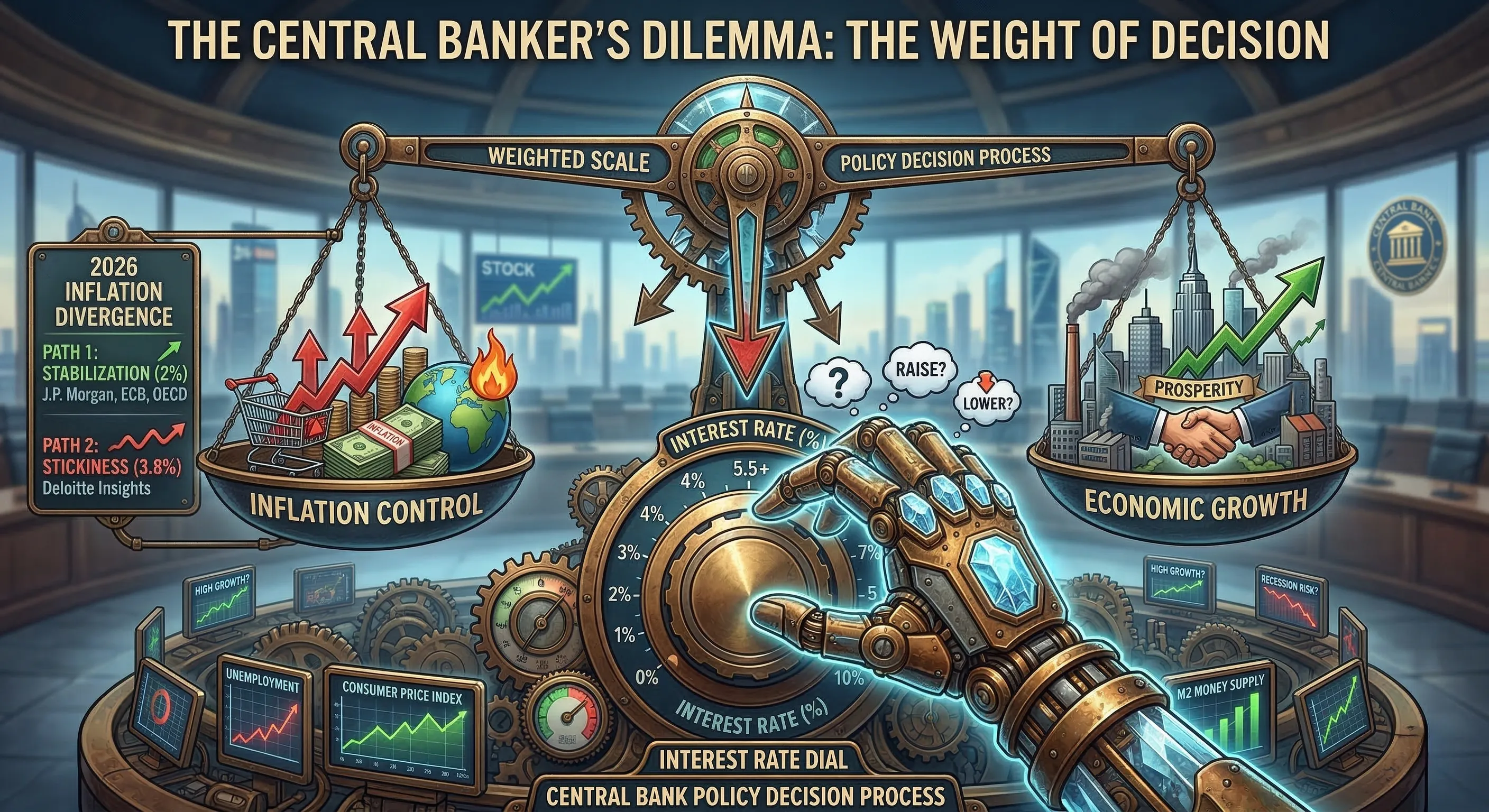 2026년 중앙은행들은 인플레이션 압력과 경기 침체 위험 사이에서 균형을 찾아야 하는 복잡한 과제에 직면해 있습니다.